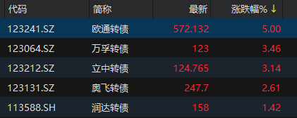 12月9日,中证转债指数低开0.08%。欧通转债涨5%欧美激情视频,万孚转债、立中转债涨超3%,奥飞转债涨超2%;大中转债、瑞达转债跌超3%,振华转债跌超2%。